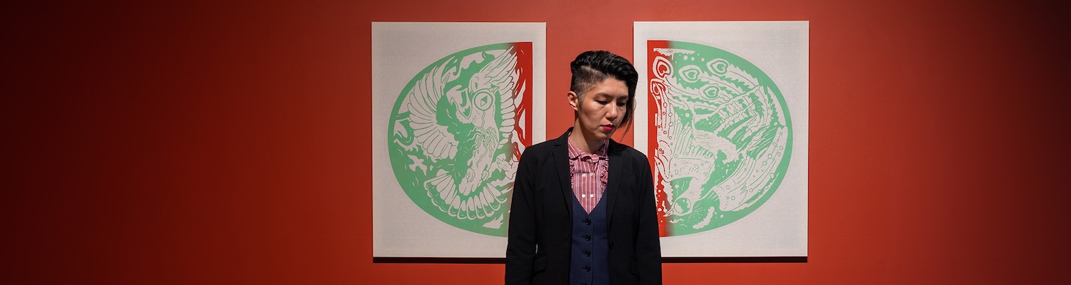 Gao has a BFA in printmaking/drawing from Washington University in St. Louis and an MFA from Emily Carr University of Art + Design. Their work is in 40 institutional collections including Bainbridge Island Museum of Art, Bowdoin College, Cornell University, Stanford University, and the Library of Congress. Their recent exhibits include Museum of Wisconsin Art, Trout Museum of Art, Burnaby Village Museum, Cedarburg Museum, and South Bend Museum of Art. Their work has been included in publications such as PBS, Shoutout LA, and Fête Chinoise. Their art residencies include Women’s Studio Workshop in Kingston, N.Y.; Art in the Park with Vancouver Board of Parks & Recreation: Decolonization, Art, & Culture; Ma’s House in the Shinnecock Reservation in Southampton, N.Y.; Iowa Lakeside Laboratory in Okoboji, Iowa; the Bubbler at Madison Public Library in Madison, Wis.; Artist Campaign School in Chicago, Ill.; Proyecto’ace in Buenos Aires, Argentina; and Museo de Arte Moderno in Chile. They are a TEDx Madison speaker and gave a talk entitled “The Power and Purpose of Creativity.”